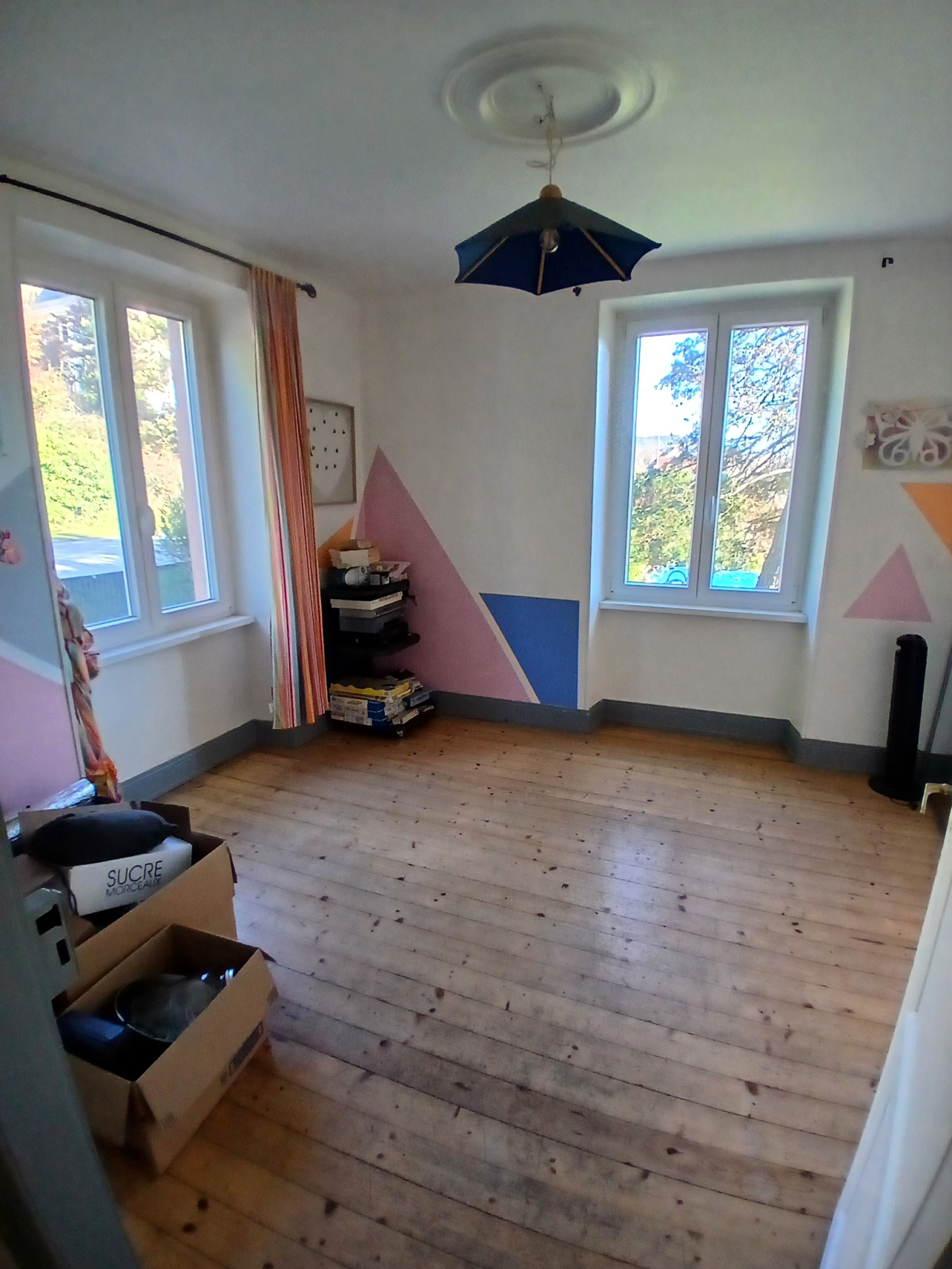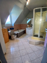 A Luttenbach, bonne expo, BELLE MAISON 6 PIECES, entrée, séjour/salle à manger avec poêle à bois, cuisine, 4 chambres, salle de bains avec wc, wc séparé, 98m² hab., cave, grenier, dépendance avec garage, atelier et stockage, terrain plat d'environ 6 ares.